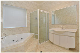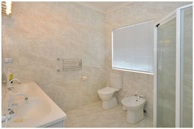 The remainder of the home features a large master bedroom with WIR and spacious ensuite with toilet and bidet, shower and twin vanity. A passage flows to the remaining bedrooms, both with WIRs and the linen press and main bathroom with shower and corner spa bath.